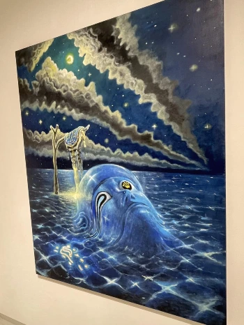 압구정 현대 아파트, 잠실 롯데타워 대한민국의 부의 상징으로서 자리 잡은 지 오래입니다. 그런데 그림 속에는 아파트만이 있는 것이 아닙니다. 병치된 세 그림 위엔 호탕하게 웃고 있는 누군가가 자리하고 있습니다. 호탕한 웃음 아래의 '부의 상징'들은 명성만큼이나 웅장하거나, 그에 맞는 경외감을 불러일으키지는 않는 것 같습니다. 오히려 웃음소리에 의해 파동 치는 모습을 보자니 우스꽝스러워 보이기까지 합니다.