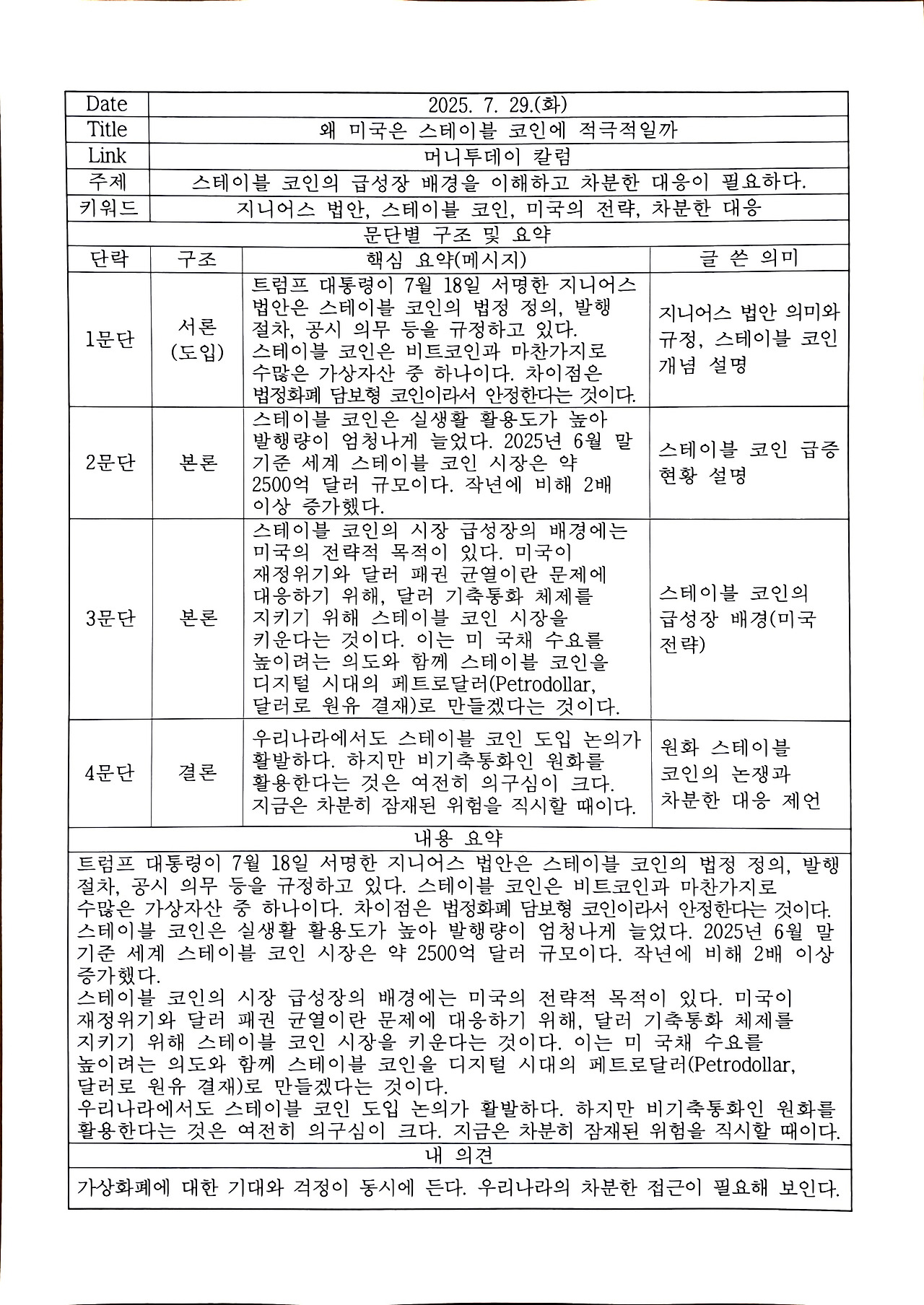 <왜 미국은 스테이블 코인에 적극적 일까> 칼럼 요약
