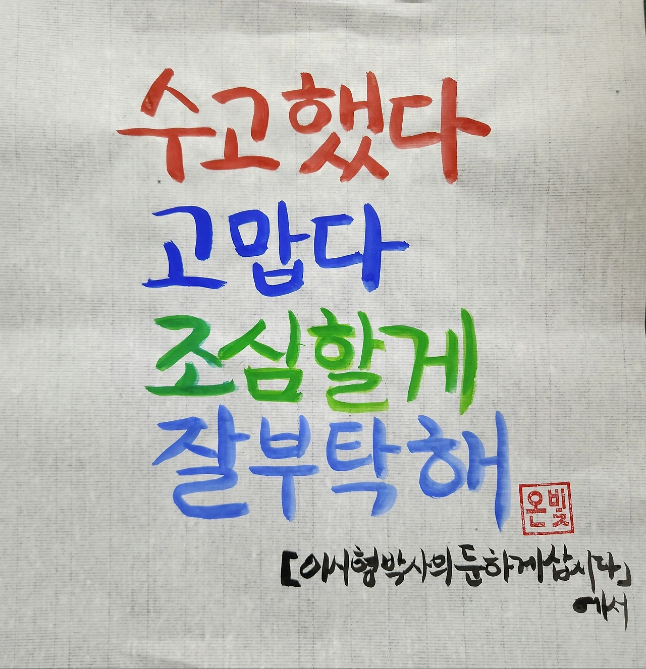 아내가 최근에 좋은 문구를 캘라그라피로 쓰고 있는데