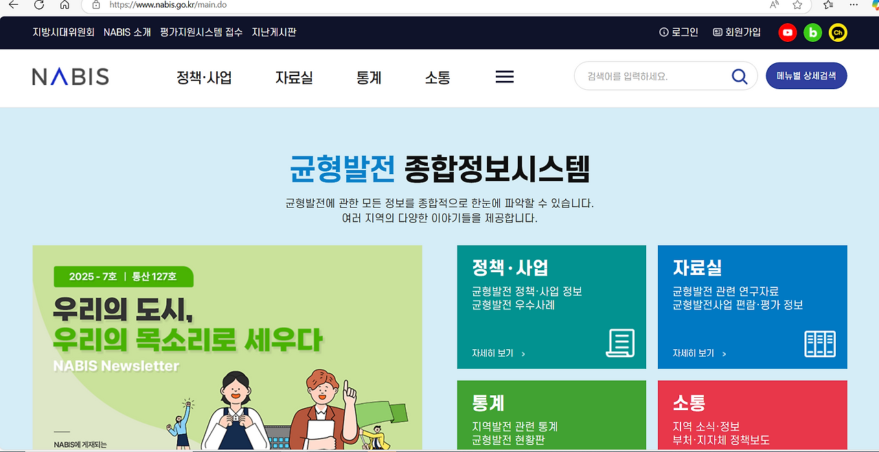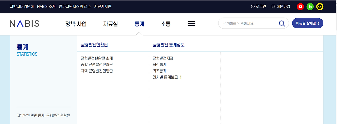 균형발전 정책과 사업, 자료실, 통계, 소통의 4개 메뉴로 구성하여 지역의 발전 현황을 알기 쉽게 검색, 활용할 수 있도록 마련한 지식정보 플랫폼
