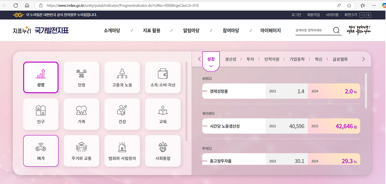 국가발전지표는 수요자 관점에서 객관적으로 지표가 구축될 수 있도록 민간 연구진 주도로 각계의 다양한 의견을 수렴하여 작성되었습니다.