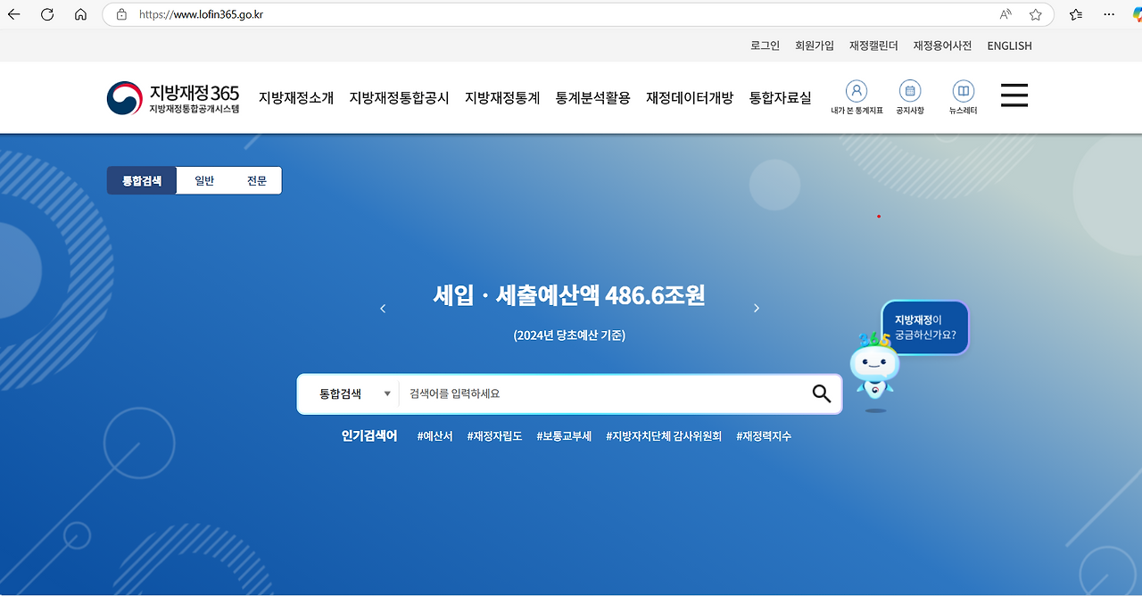 지방재정365는 투명한 지방재정 실현을 위해 지방재정, 지방교육재정, 지방공공기관의 재정 ⁃ 경영정보를 알기 쉽게 한 곳에서 공개하고 민간에서 활용이 가능하도록 개방하는 시스템으로, 지방과 중앙사이에 원활한 재정 정보의 공유와 공개의 역할을 담당하고 있는 지방재정 정보의 보고입니다.