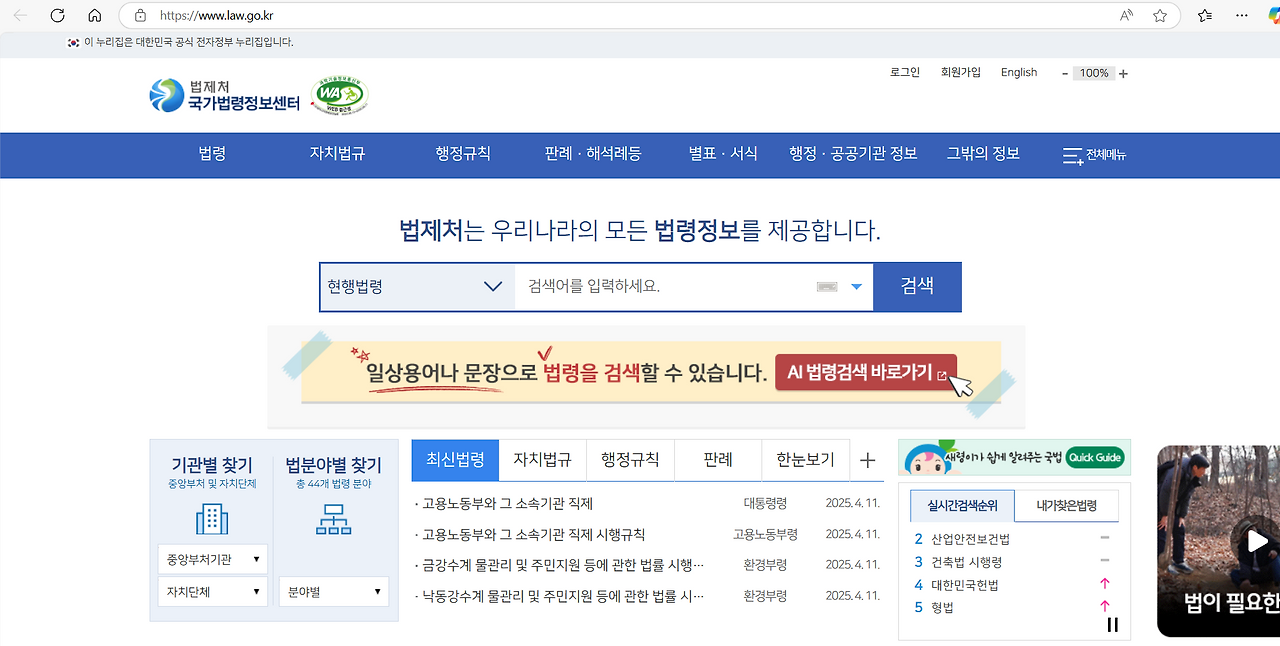 보고서에 포함되는 법률자료를 찾을 수 있는 사이트를 알려드립니다.