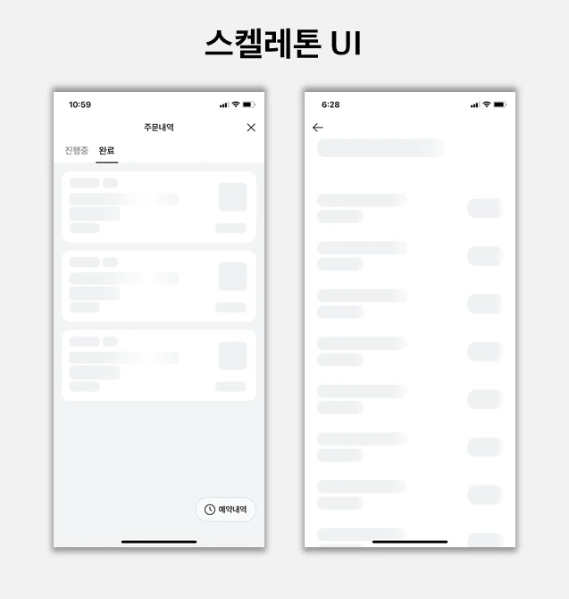 진행 표시 상황처럼 스켈레톤 UI도 사용자가 서비스를 이용하면서 대기하는 동안 겪는 경험을 개선시킬 수 있는 기법이라고 하고 카카오페이증권은 이 기법을 채택하고 있었다.