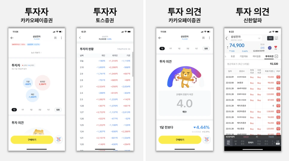 토스증권이 MZ세대와 초보 투자자를 위한 방향성을 갖고 있었다면 카카오페이증권은 3,700만 명에 달하는 카카오페이의 사용자 수를 고려해 어느 연령대의 누구라도 쉽게 주식 투자를 할 수 있도록 제작했다고 한다.