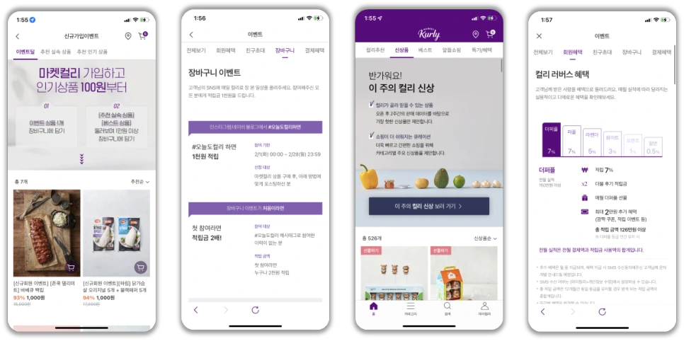 · 프로모션: 가입 이벤트, 장바구니 이벤트, 컬리 리버스