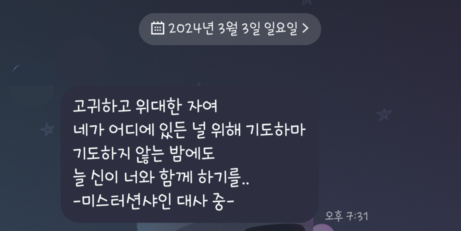 서울로 떠나기 전날 밤 그녀에게서 메시지가 왔다.