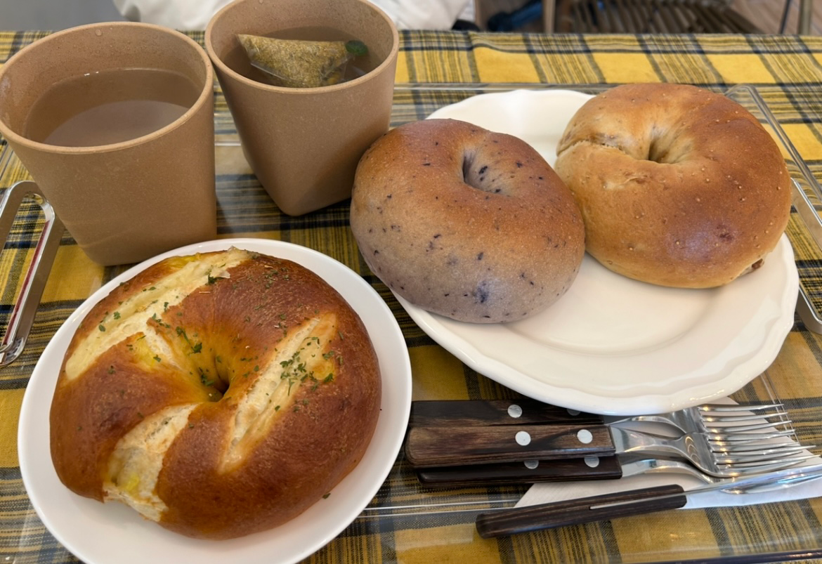 우리는 허브차와 비건 빵 세 개를 주문했다. 우유, 설탕, 달걀, 버터도 들어가지 않은 쌀빵이었지만 그 담백함이 오히려 더 깊은 맛을 느끼게 했다. 작고 소박한 테이블에 마주 앉아 빵을 한 입씩 베어 물며 감탄을 터뜨렸다.