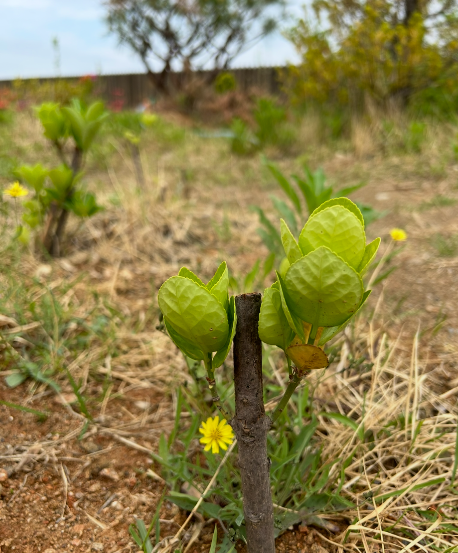 옥상에서 맨발 걷기 매일 인사를 나눈 아기 나무