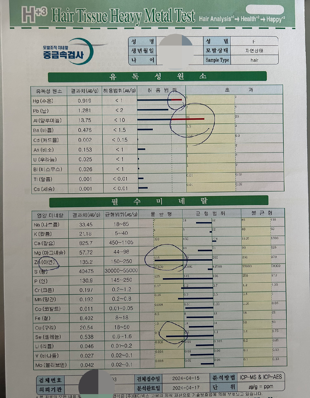 가장 충격적이었던 건 모발 미네랄 중금속 검사 결과였다. 항암과 방사선 치료를 받는 동안 기능의학 의사 선생님들의 유튜브 채널을 관심 있게 보며 관련 내용을 공부하고 있었고, 두 번째로 입원했던 병원에서 검사를 받을 수 있었다.