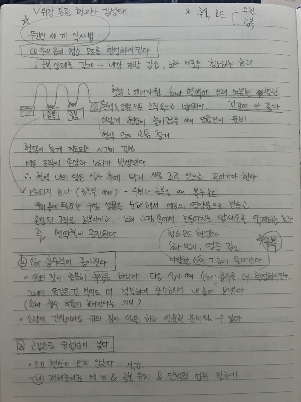 그러던 어느 날, 한의사 선생님의 유튜브 채널에서 ‘무간식 세 끼 식사법’이라는 영상을 보게 됐다. 익숙한 내용이었지만 그 안에 내가 선택해온 방향과 같은 이야기가 담겨 있었다. 영상 속 한 마디 한 마디가 지금까지의 내 방식을 뒷받침해주는 것 같았다. 잘하고 있다고 그 방향이 괜찮다고 말해주는 것 같아서 빠르게 메모했고, 마음에도 꾹꾹 눌러 담았다.