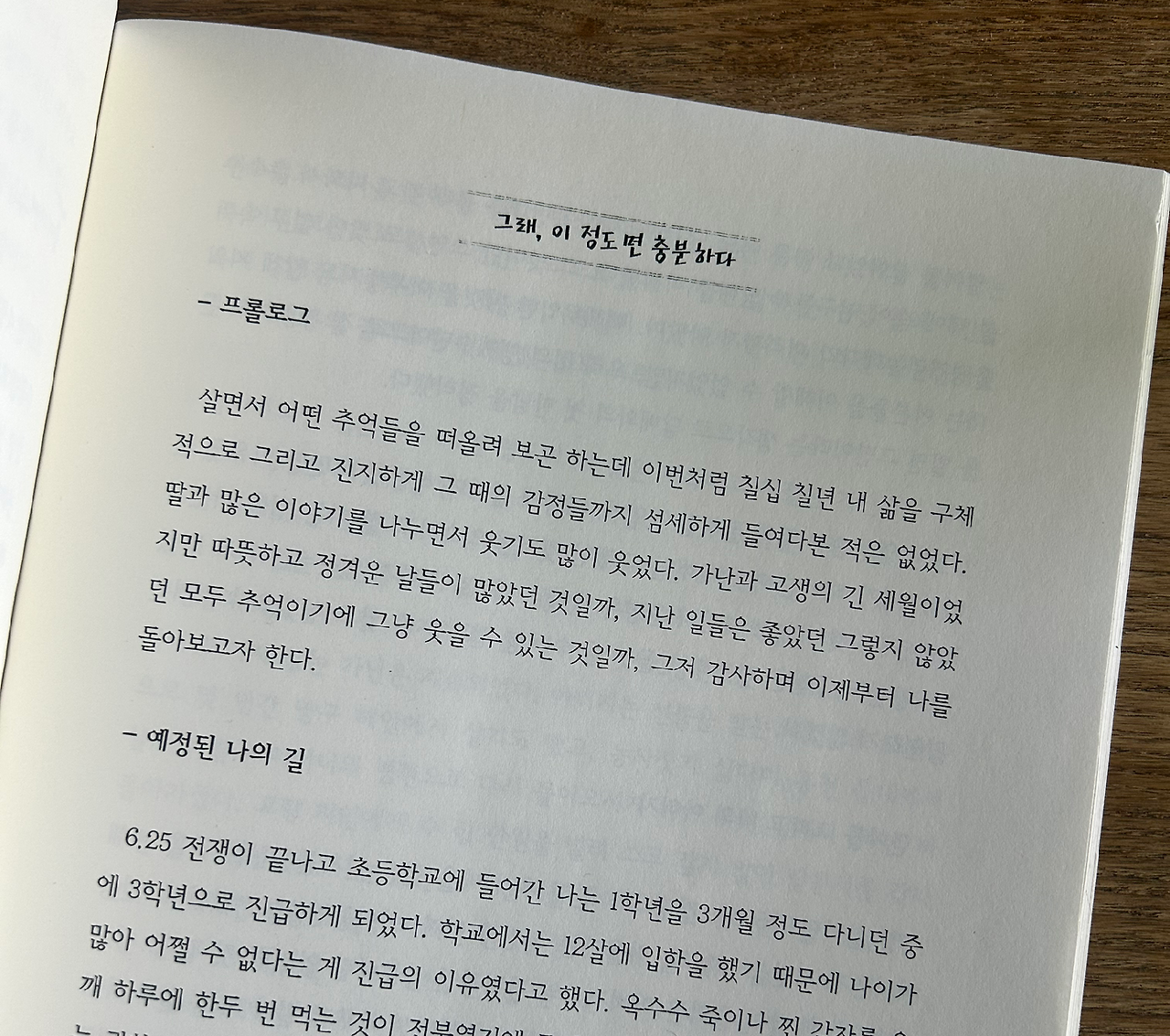 비록 자서전이라 부르기에는 너무 짧고 부족한 글이었지만 마음만큼은 온전히 진심이었다. 아빠가 직접 쓰신 것처럼 문체를 다듬고, 읽기 편하시도록 글씨도 크게 하여, A4 여덟 페이지 분량의 글을 그동안 써두었던 짧은 글들과 함께 묶어 작은 책으로 만들었다.