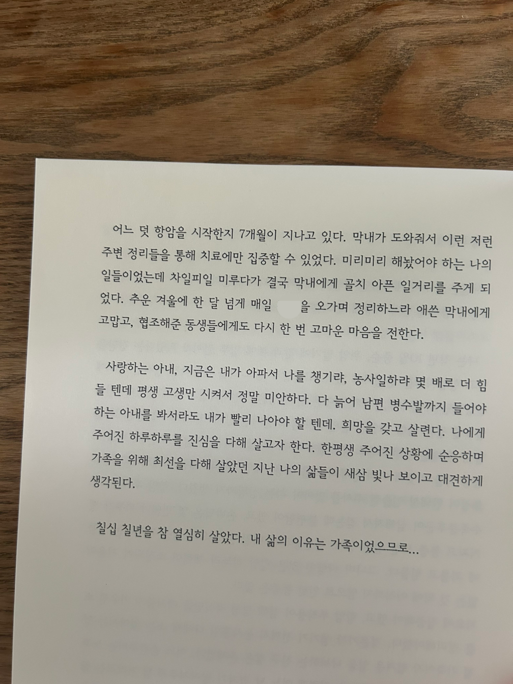 그런데, 막내야… 내가 정말 그렇게 잘 살아온 게 맞을까? 네가 내 딸이라서 좋게 써준 거 아냐?”