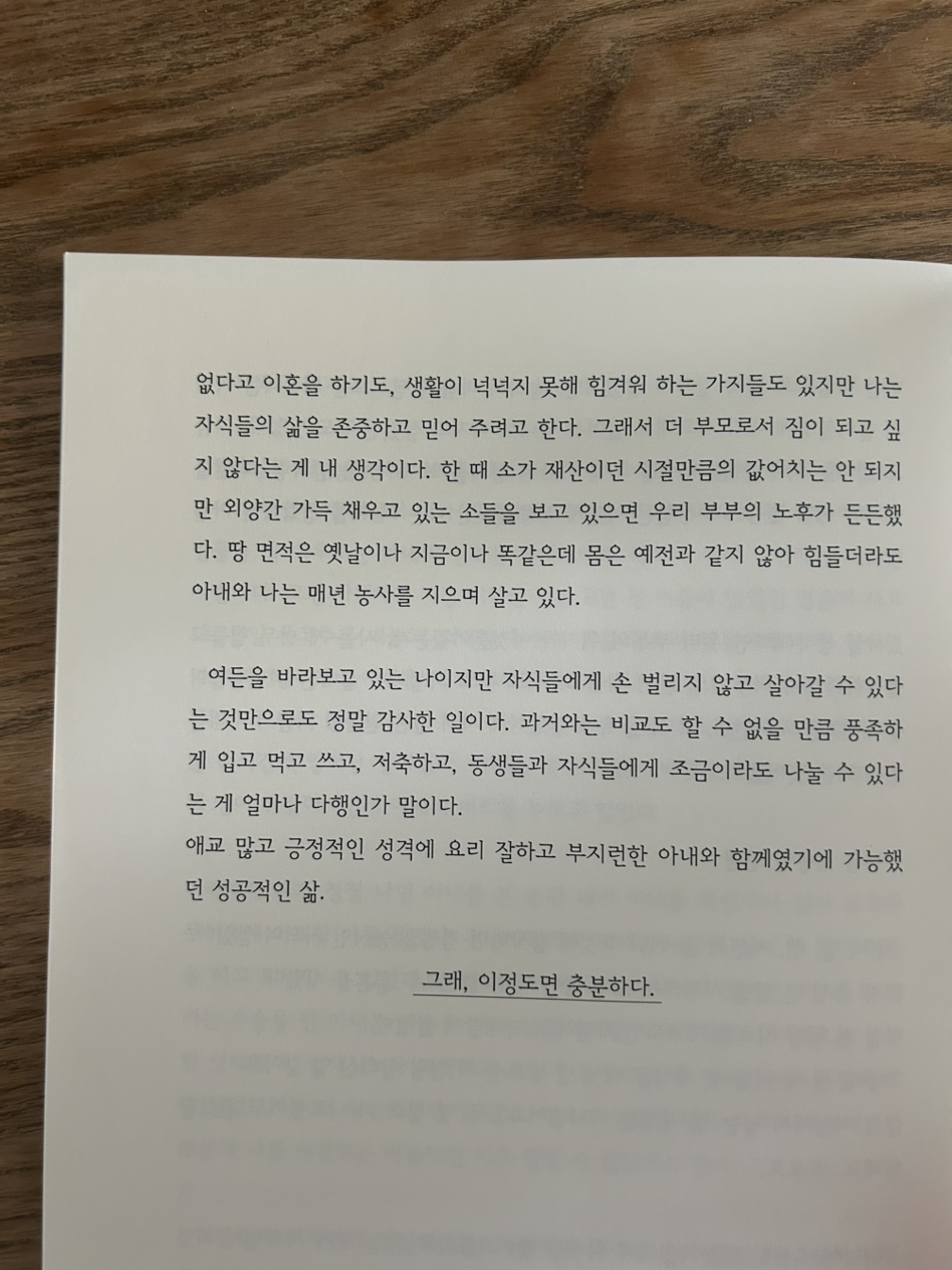 아빠 글의 제목은 ‘그래, 이 정도면 충분하다’였다.