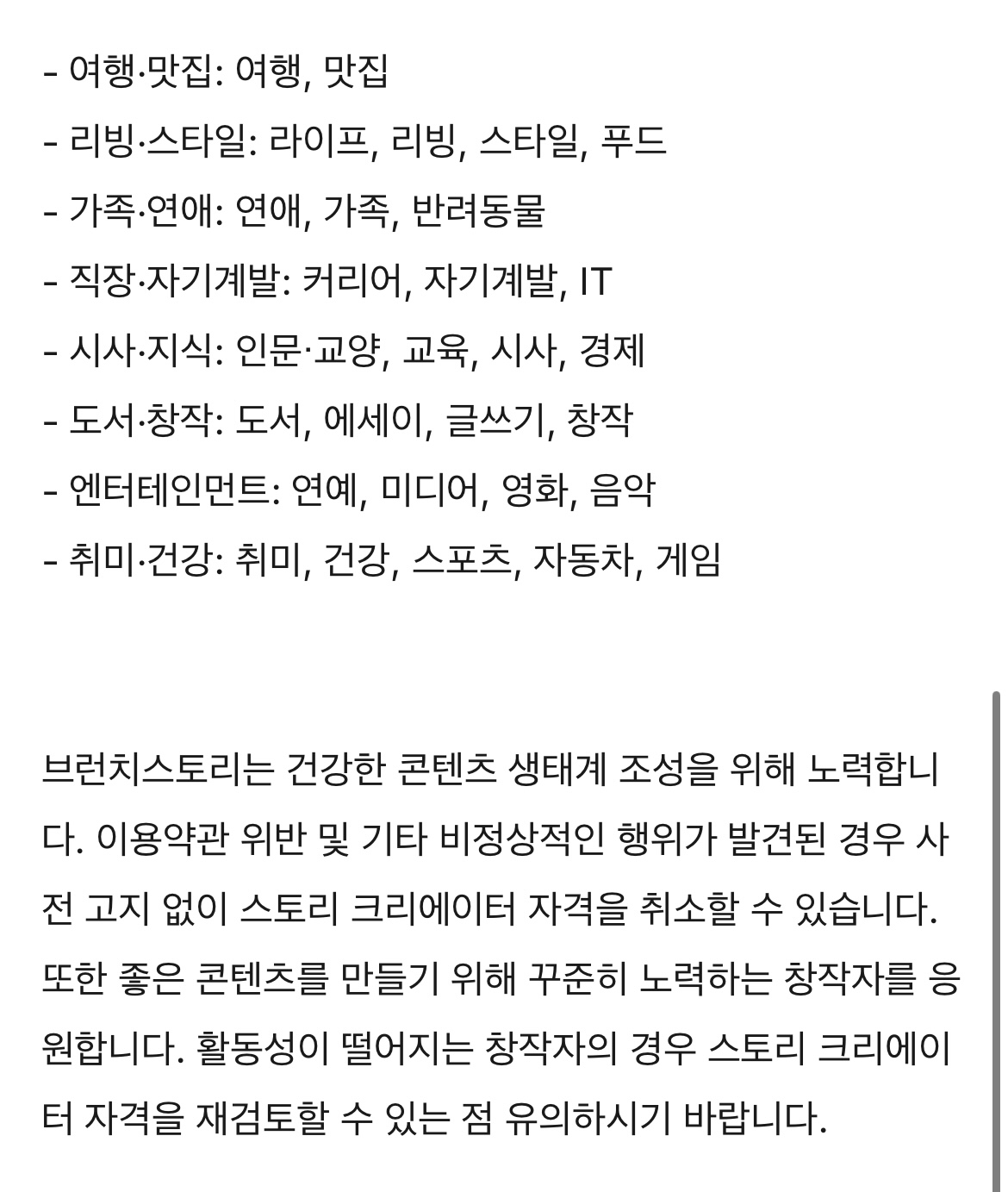 제가 에세이 분야 크리에이터로 선정되었어요.