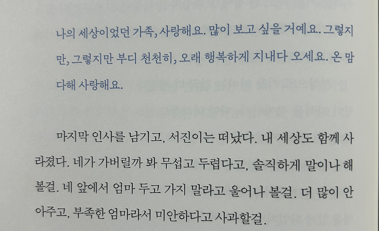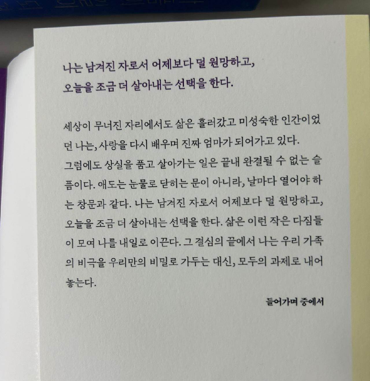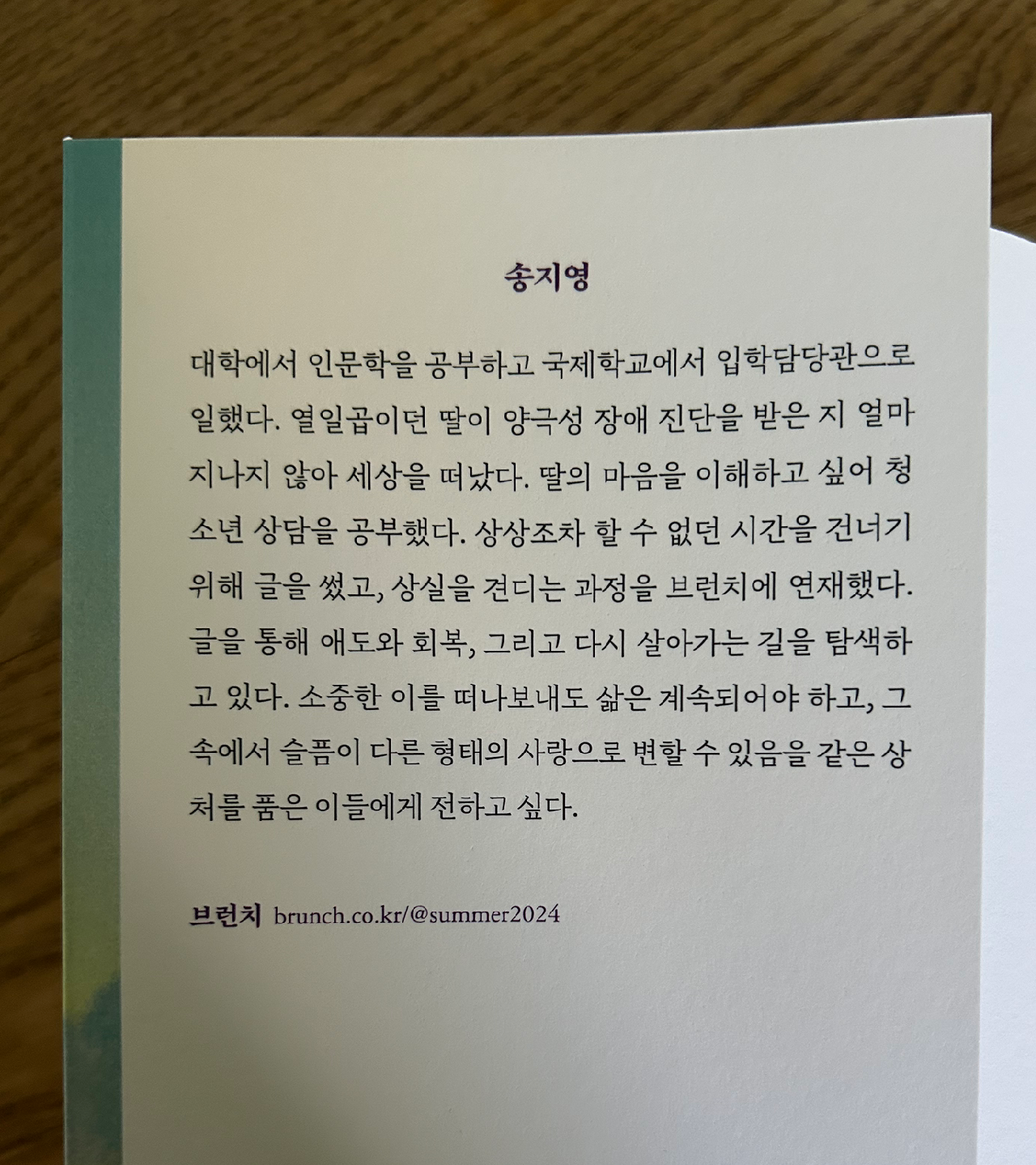 떠나간 딸을 이해하고 또한 살아내기 위해 글을 쓴 작가님의 마음은 숨이 막힐 정도로 절실하면서도 동시에 차분하게 글을 풀어내는 힘이 느껴졌다.