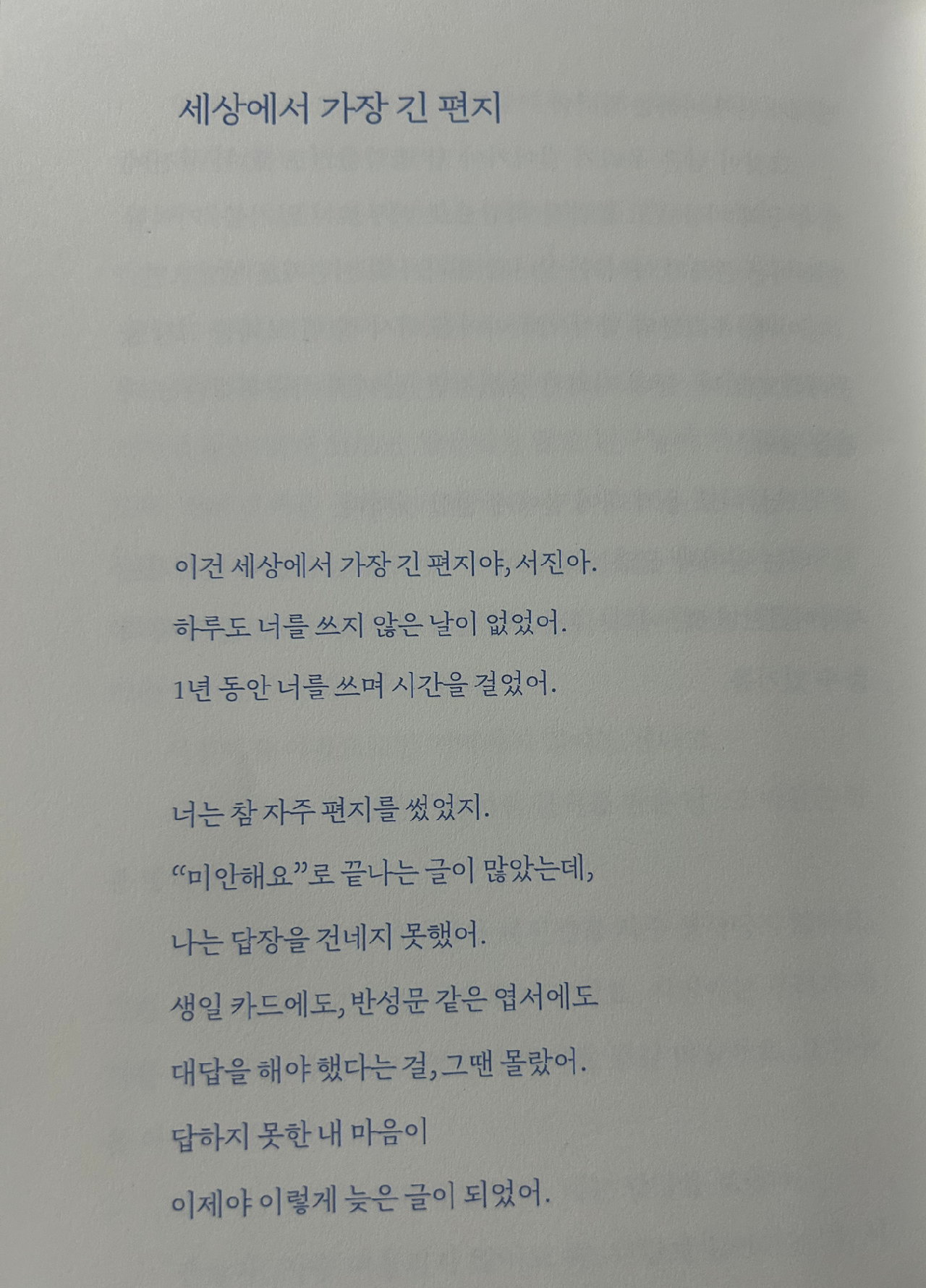 비슷한 아픔과 상처가 있는 사람들에게 손을 내밀어주는 작가님의 간절함과 애틋한 마음이 고맙기도 하고 안쓰럽기도 하다.