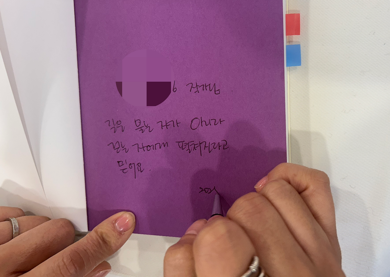 가족들이 동의와 용기를 주었기에 자녀의 이야기이자 가족의 이야기를 담은 이 책은 비로소 세상에 나올 수 있었고 하셨다. 큰 아픔이 있었음에도 남편과 아들 그리고 작가님 세 사람의 단단한 사랑과 살아가고자 하는 의지, 그 조용하면서도 강한 연대가 얼마나 견고한지 느껴졌다. 그래서 한편으로는 다행이라는 생각이 들었고, 그 힘으로 이어진 작가님의 지금 모습이 더욱 멋져 보였다.