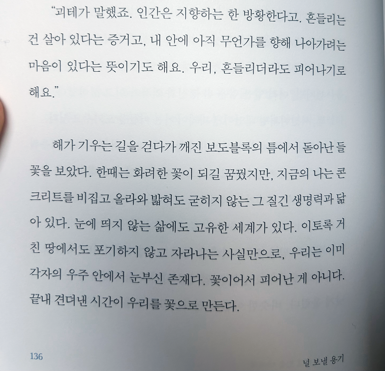 처음 이 책을 읽었을 때는 자녀를 잃은 슬픔과 고통에 깊이 빠져들어 많이 울고 마음이 힘들었다. 하지만 두 번째 읽었을 때는 작가가 왜 이 글을 썼는지, 무엇을 말하고 싶었는지를 깨닫게 되면서 주제에 집중할 수 있었다. 이 이야기는 단지 상실을 토해내거나 고통을 이야기하기 위한 기록이 아니라 절망을 지나 다시 삶과 희망을 말하려는 것을 말이다.