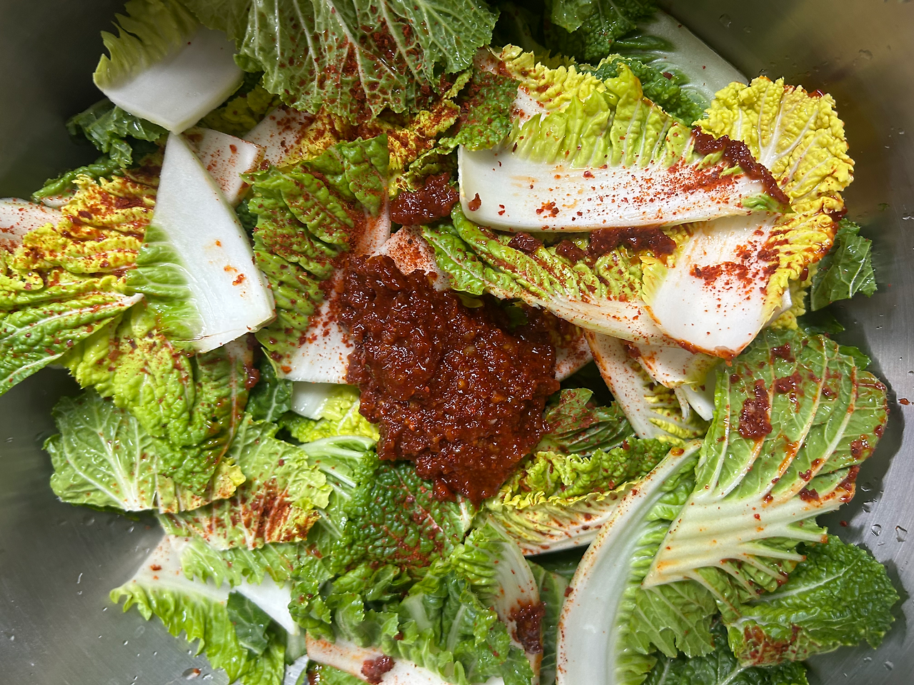 스텐볼에 남은 양념까지 싹싹 긁어 그릇에 옮겨 담고, 손에 남은 양념도 알뜰하게 모아 담는다. 손가락에 남은 것은 입으로 슬쩍, 이 또한 여덟 살 버릇 그대로다.