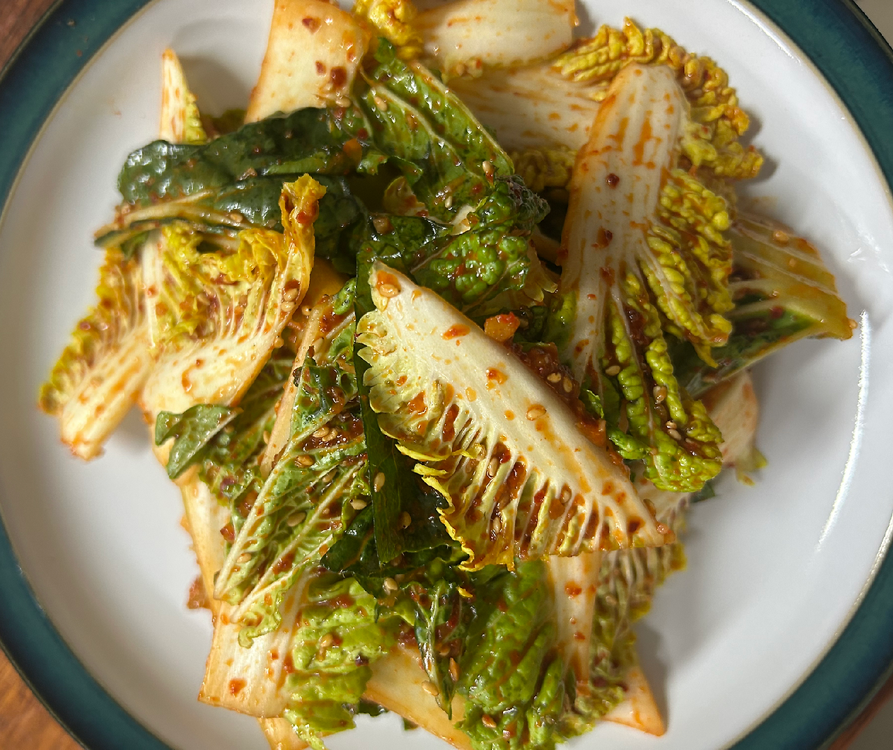 봄동 자체에 수분도 많고 고소한 맛이 있어서 양념을 많이 할 필요가 없다. 멸치액젓과 고춧가루, 마늘을 넣고 매실액으로 단맛과 새콤함을 더한다. 참깨를 절구로 몇 번 갈아 고소함을 슬쩍 보태고 먹음직스럽게 통참깨를 뿌린다. 봄동의 베타카로틴은 식물성 기름과 궁합이 좋기에 먹을 만큼만 덜어 들기름으로 마무리한다.