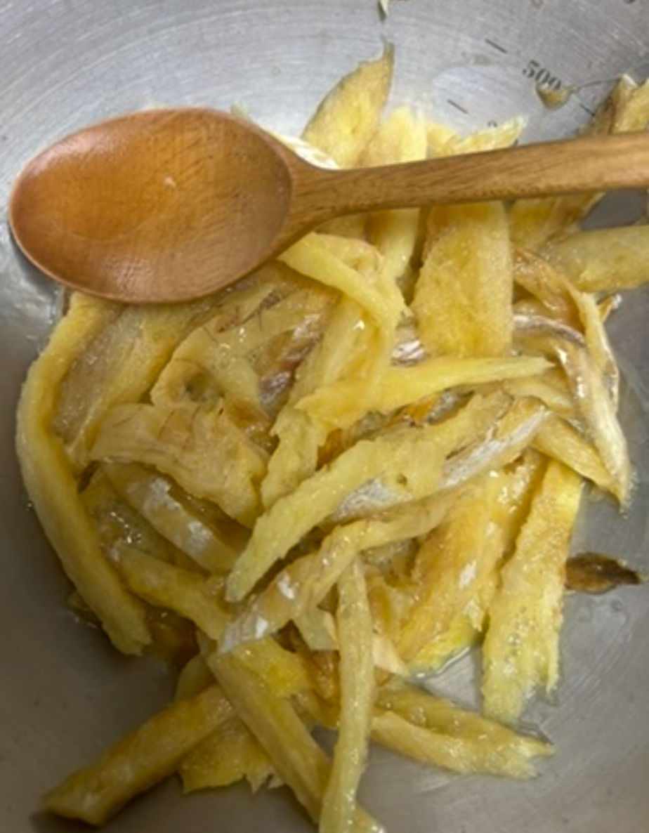-황태채를 물에 한번 씻어 건져내고, 길이가 길면 적당하게 가위로 잘라준다.