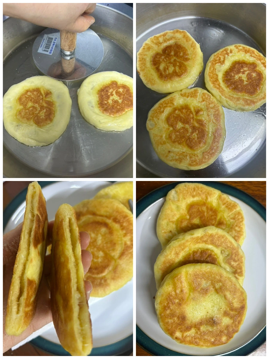 -예열된 프라이팬에 반죽을 올려 노릇하게 되면