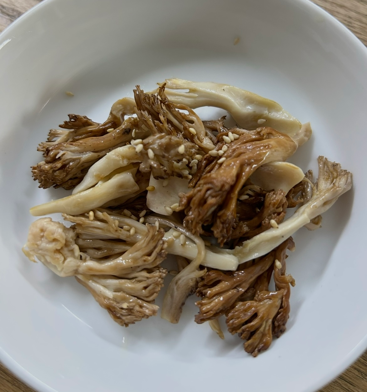 통들깨를 뿌려 식감을 더한다. 오래 씹을수록 버섯의 담백한 향과 고소함이 은은하게 살아난다.