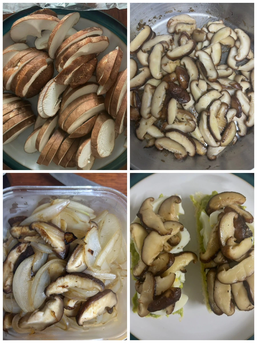 표고버섯을 슬쩍 볶아 아보카도와 달걀과 함께 샌드위치에 올려주거나 양파와 볶아준다.