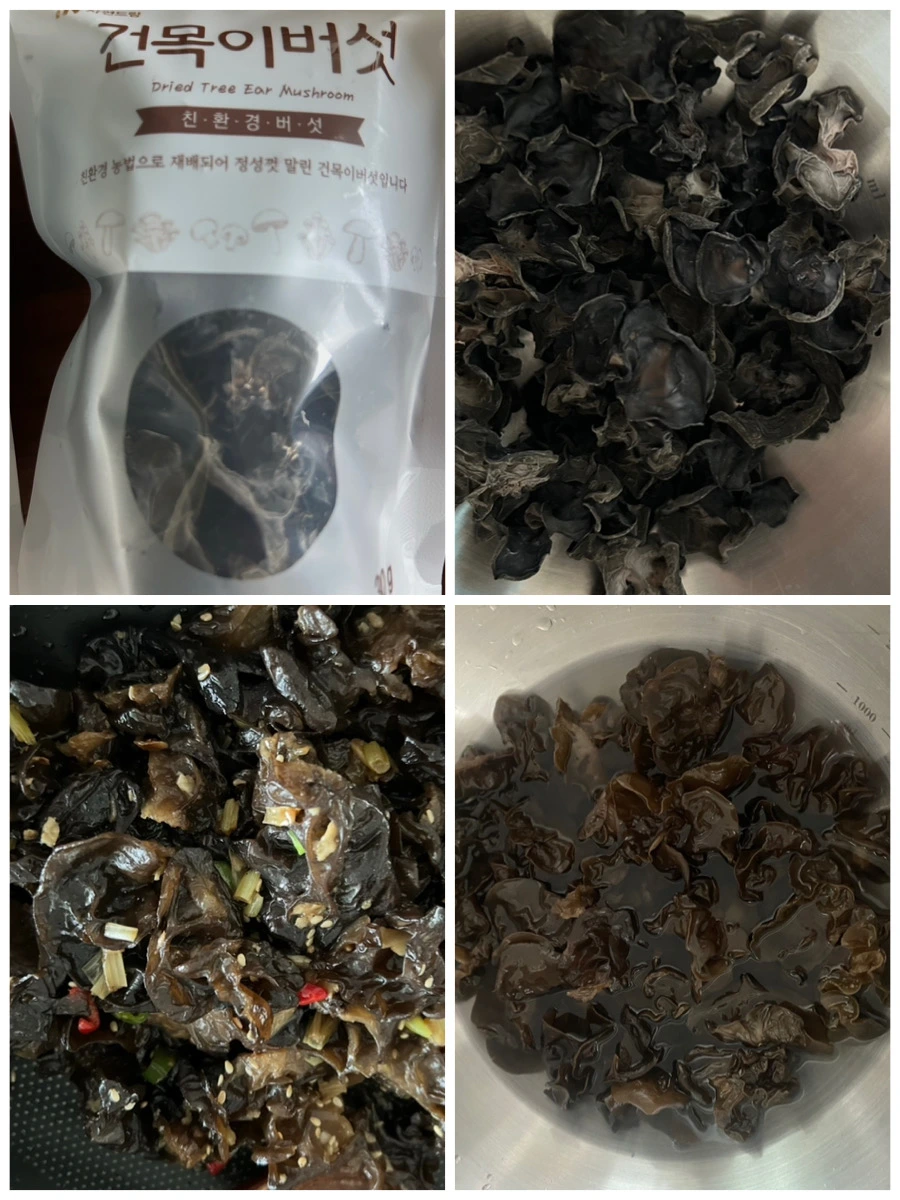 목이버섯은 미지근한 물에 30분 정도 불려준다. 물기를 짜고 간장과 굴소스 약간, 마늘과 다진 파로 센불에서 2분 정도 볶는다. 쫄깃한 식감의 목이버섯은 입맛을 살려주는 든든한 반찬이다.