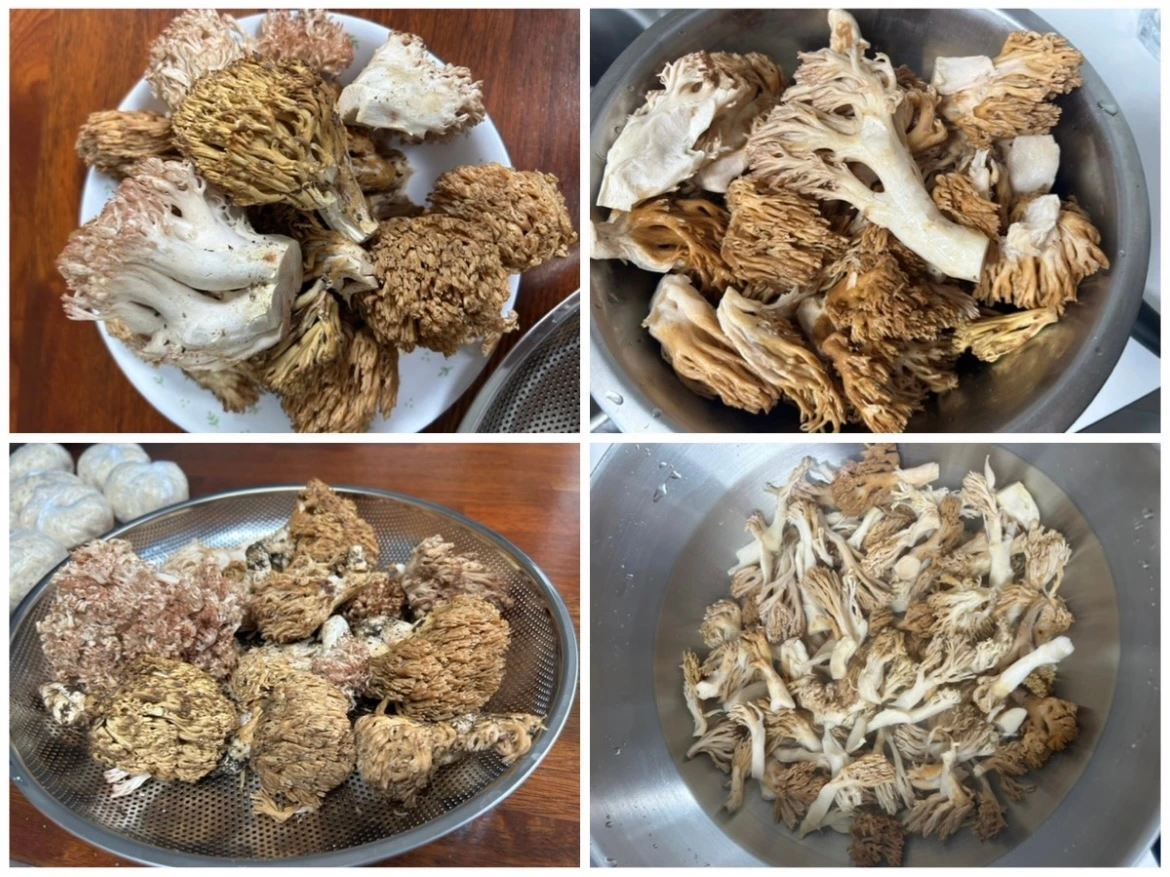 흙과 낙엽을 깨끗하게 손질한다. 끓는 물에 넣어 한 번 끓어오른 후 꺼낸다. 찬물에 여러 번 헹군 후 먹기 좋게 뜯어준다. 찬물에 담가 2-3일 우려내 독성을 제거한 후 먹는다. 쫄깃쫄깃한 식감은 버섯 중에 싸리버섯이 최고다.