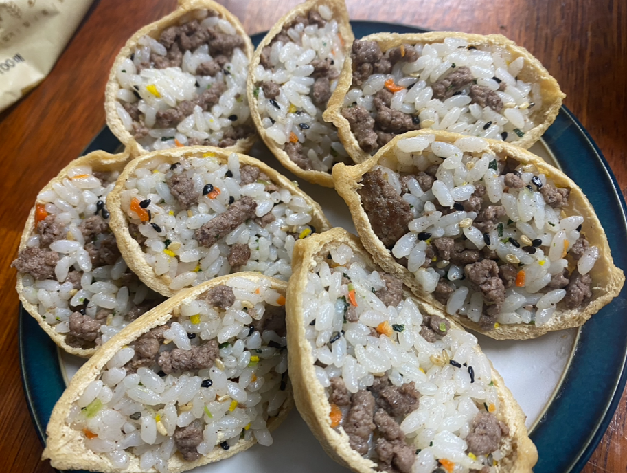 -소고기 주먹밥을 유부에 넣어도 좋다.