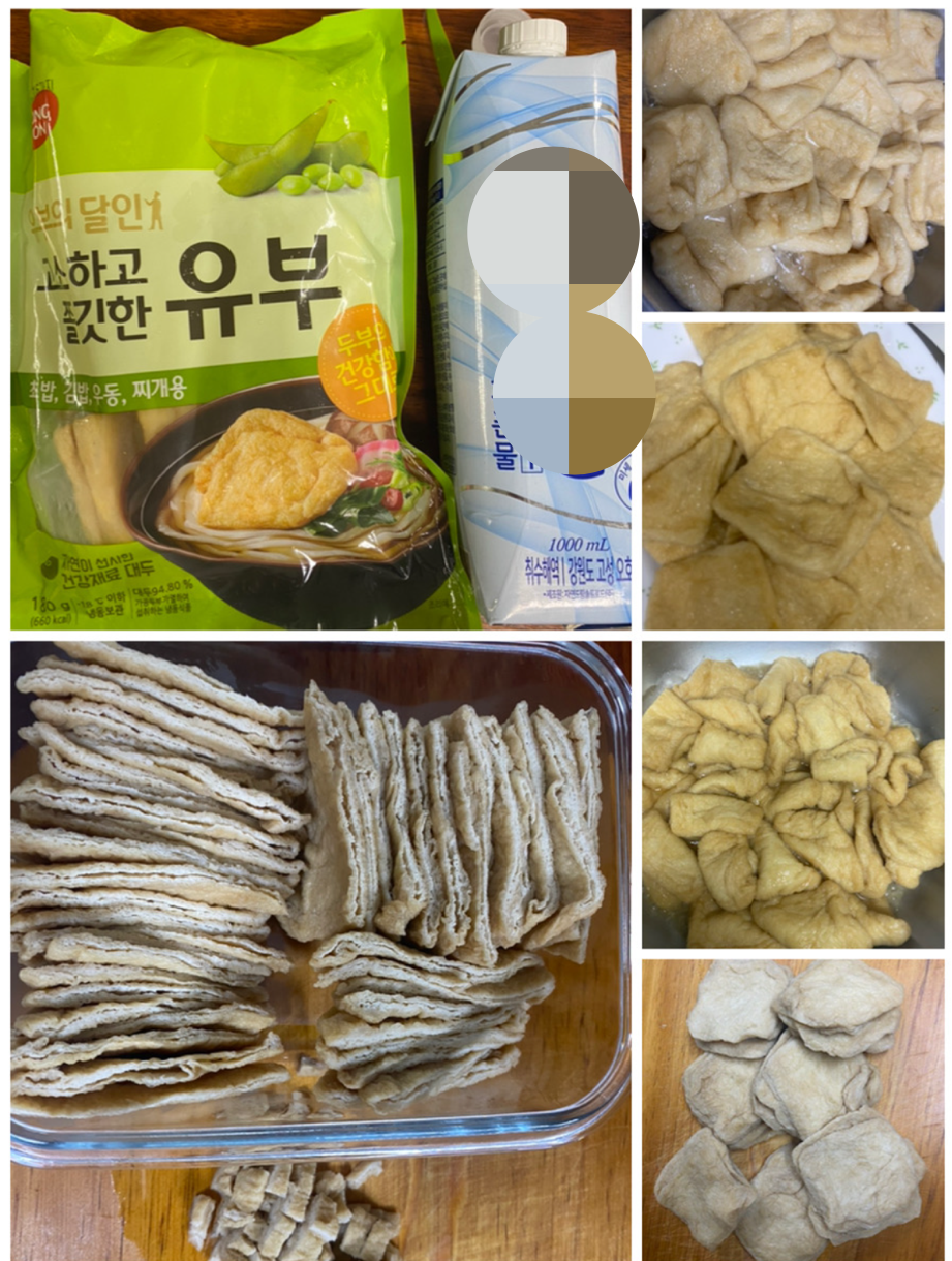 -유부 절반을 꺼낸다.(오른쪽 봉지 유부)