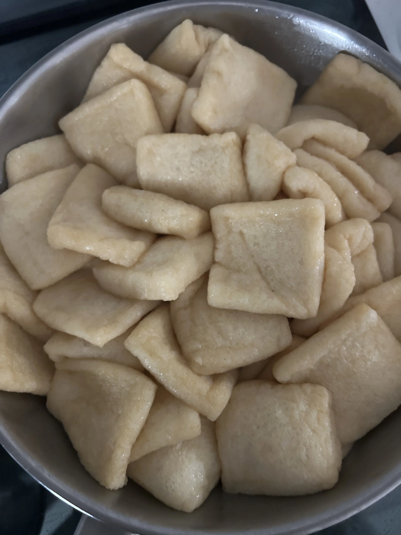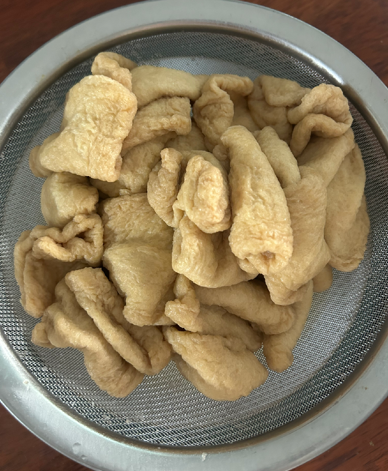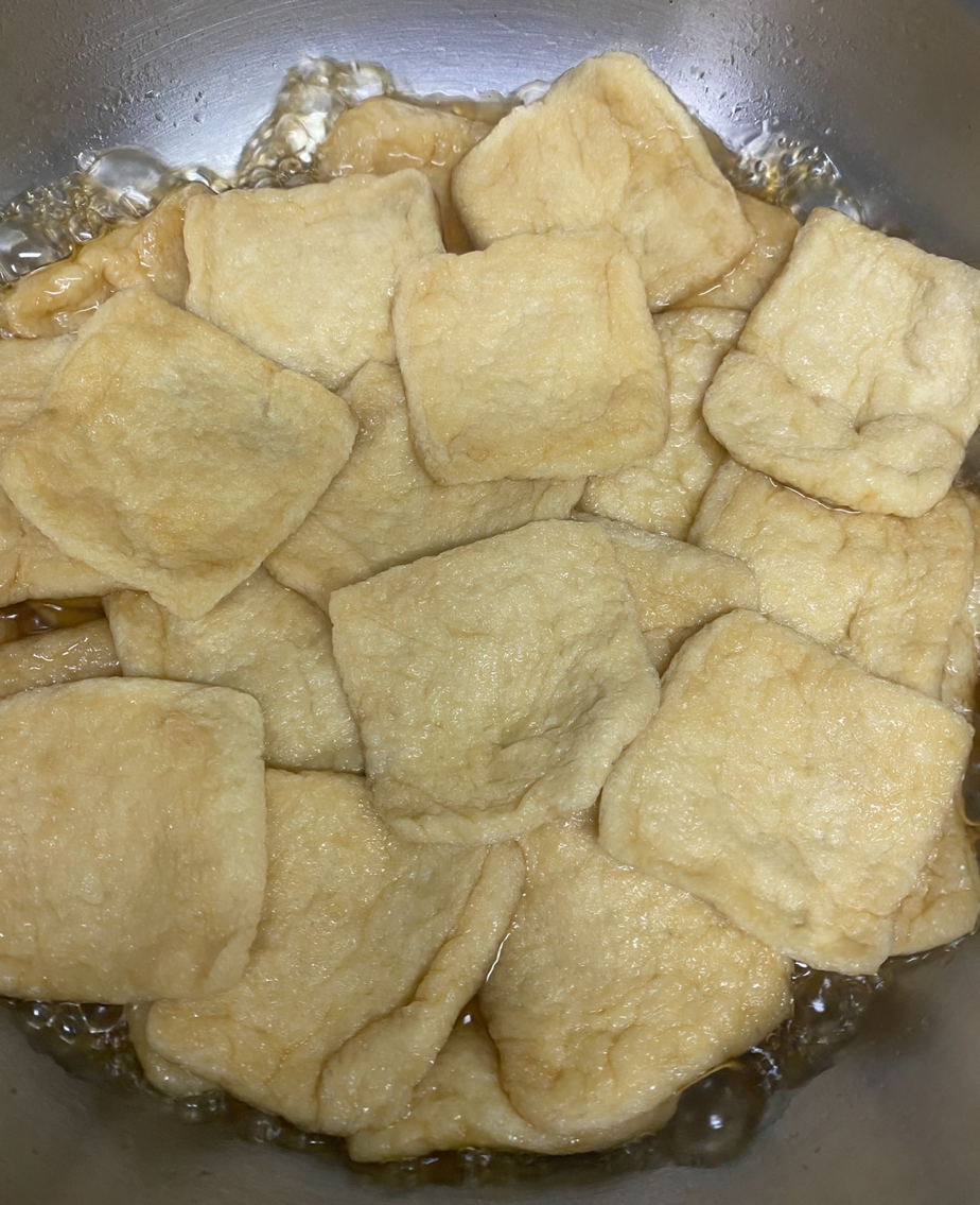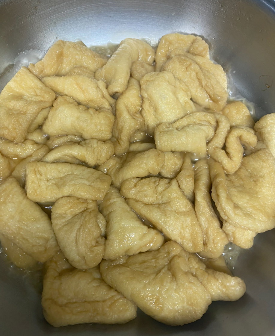 -물이 끓으면 냉동 상태의 유부를 넣어 2-3분 정도 뒤적뒤적 데친다.