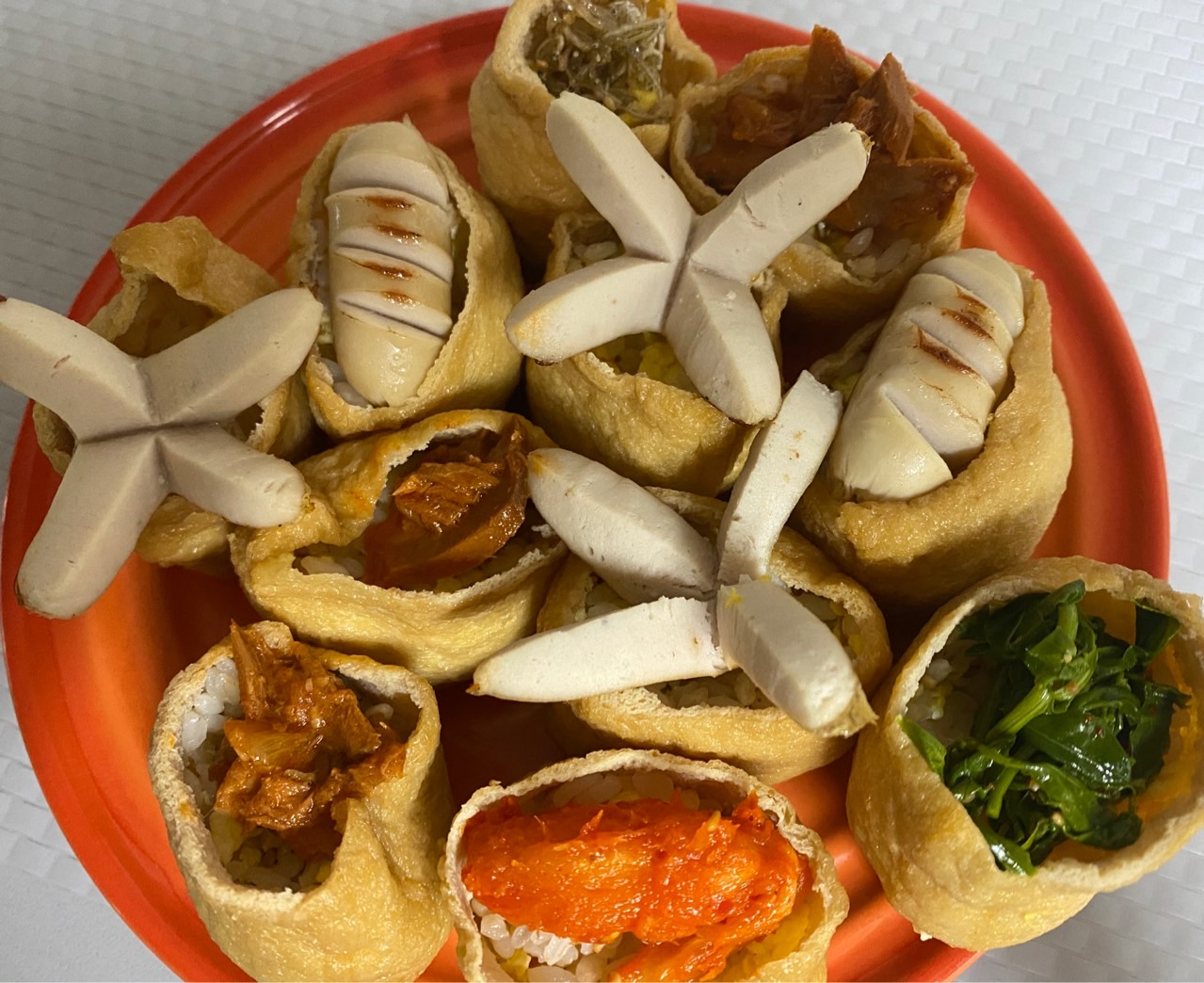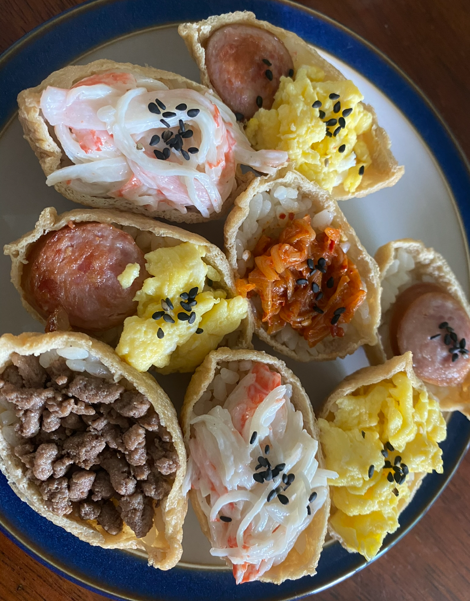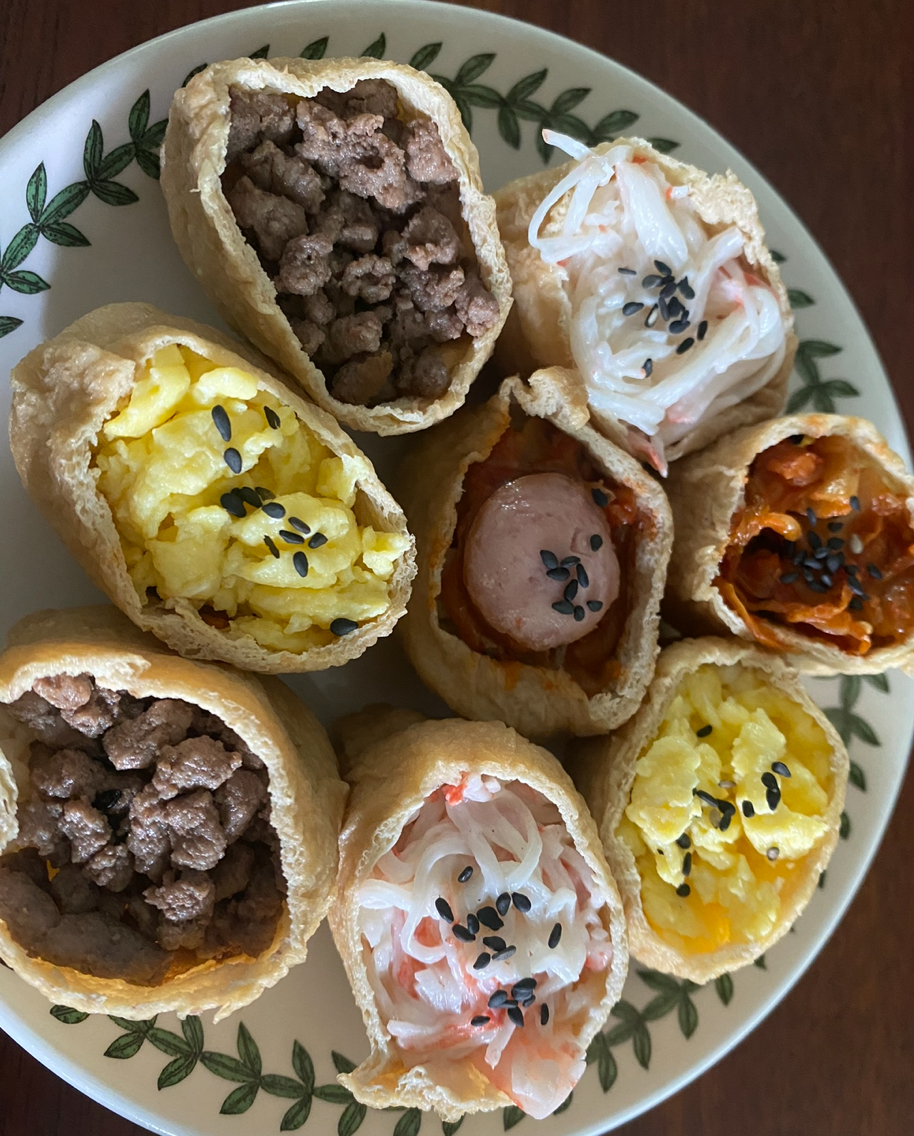 나는 초밥을 그다지 좋아하지 않아 촛물 대신 밥과 다양한 고명으로 맛을 낸다. 아이들도 해주는 대로 잘 먹는 편인데, 아마 고명 맛을 더 즐기는 것 같다. 유부초밥을 만들 때는 촛물을 직접 만들어 사용해도 좋고, 시판용 유부초밥에 들어 있는 촛물을 활용해도 괜찮다. 아이들과 함께 만들며 즐거운 시간을 보낼 수 있으니 부담 없이 시도해 보시길 바란다.