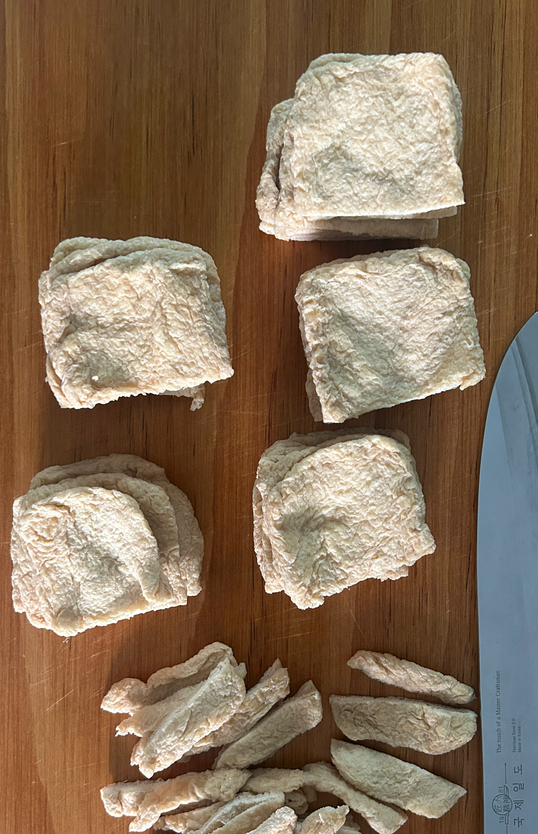 -유부를 네모 혹은 세모 모양으로 자른다.