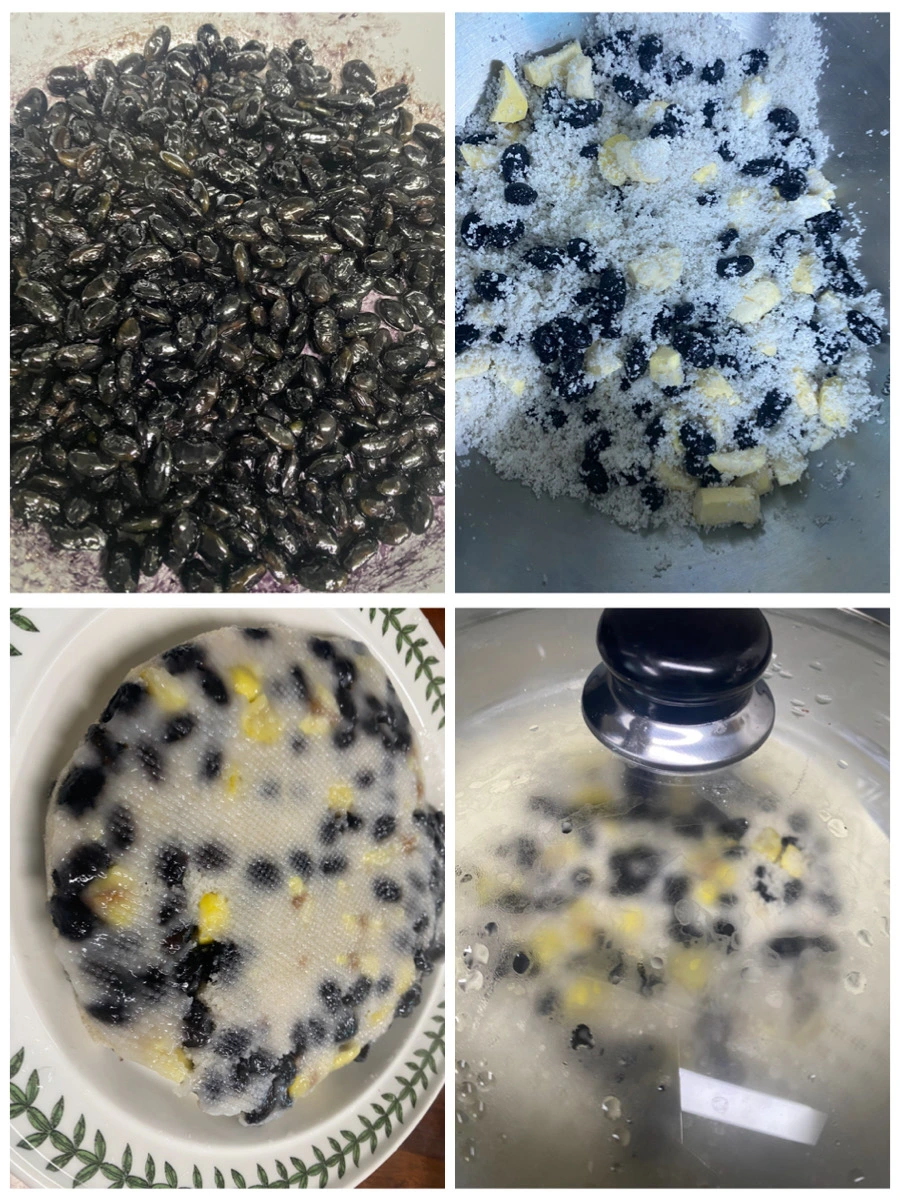 -자연드림 찹쌀가루에 콩과 밤을 섞고, 소금 살짝 후에 찜기에 쪘다.