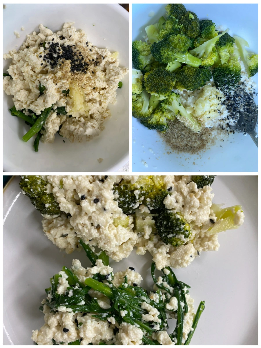 -두부를 으깬 후 쑥갓이나 브로콜리와 무친다.