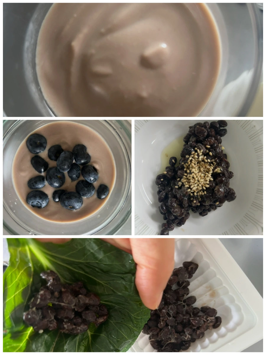 -검정콩 낫또에 생들기름을 섞어 김이나 살짝 찐 케일에 싸 먹는다.