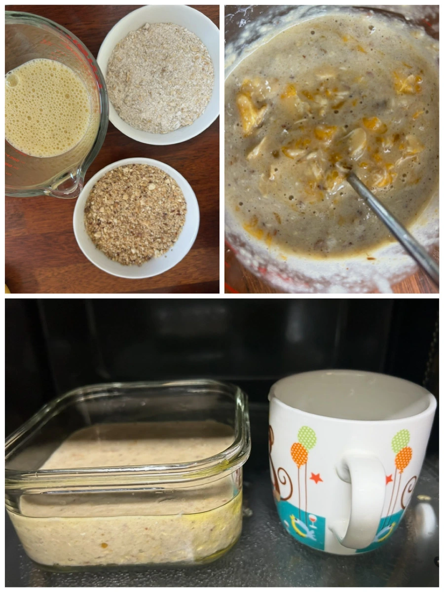 *준비물: 유기농 오트밀 4-5숟가락, 잘 익은 바나나 1개, 달걀 1개, 물 3-4숟가락, 호두와 아몬드, 소금 1/4t, 베이킹파우더 1/3t(생략 가능), 도파민과의 만남을 기대하는 마음