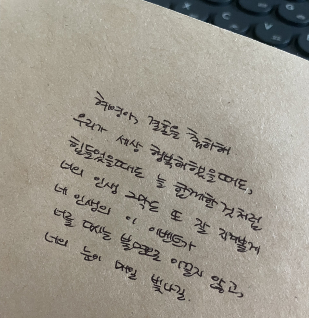 아끼는 동생이 어제 결혼을 했다. 세상 행복해 했을 때도, 가장 밑바닥을 쳤을 때도 늘 함께한 동생. 인생에서 이 이벤트가 다시는 너를 불면으로 이끌지 않고, 눈이 반짝반짝 빛나길 빌며 온 마음을 다해 축하했다.