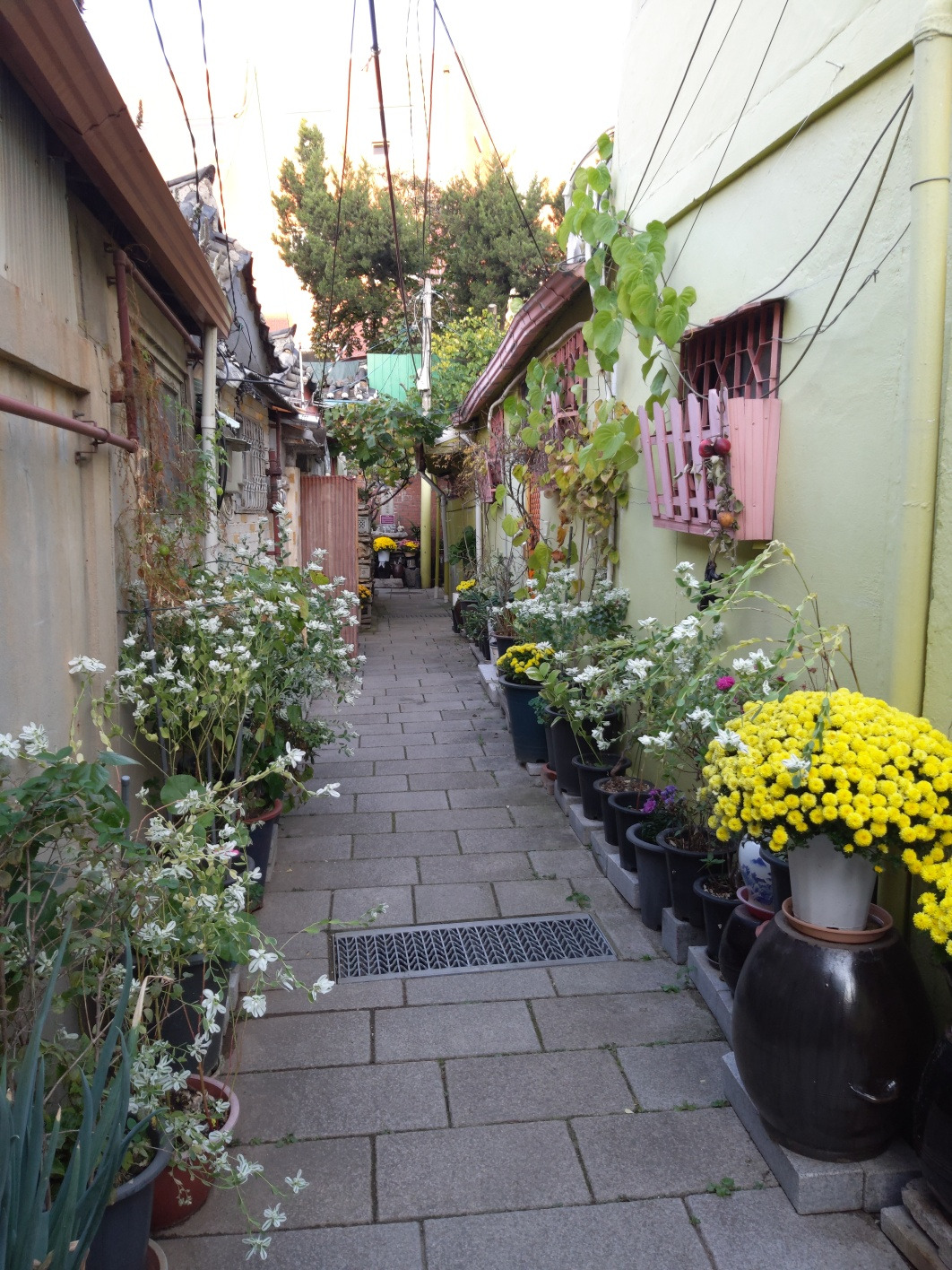 아무도 바쁘게 걷지 않았다. 앉아 쉬는 사람들도 있었다. 단풍 거리가 그리 길지 않아 우리는 좁은 골목길로 들어갔다. 아무런 생각도 목적도 없이 발길 닿는 대로 이리저리 걸었다. 일부러 아주 천천히 걸으며 작은 가게들과 좁은 주택들을 들여다보기도 했다.