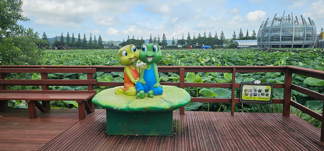 백련지는 둘레가 3km나 되는 큰 연못입니다. 연못가장자리에는 백련지 둘레길이 조성되어 있고 연못 속으로 예쁜 데크가 놓여 있고 전망대도 있습니다. 수양버들을 길 양옆으로 심어 둔 호수 산책길도 조성되어 있네요. 몇 년이 지나면 좋은 산책로가 될 것 같아요.