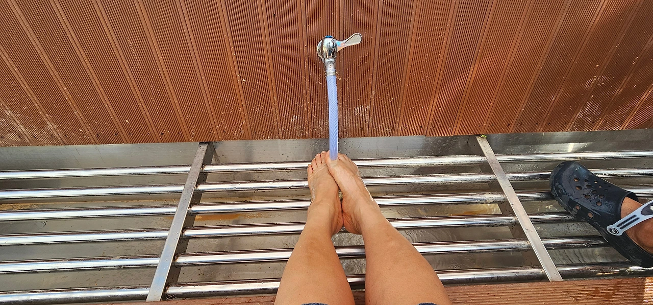 날씨가 무척 덥습니다. 어제저녁에 도착한 우리는 열대야로 잠 못 들다가 새벽에 기온이 떨어져 겨우 잠들었습니다. 우리는 차박쟁이입니다.