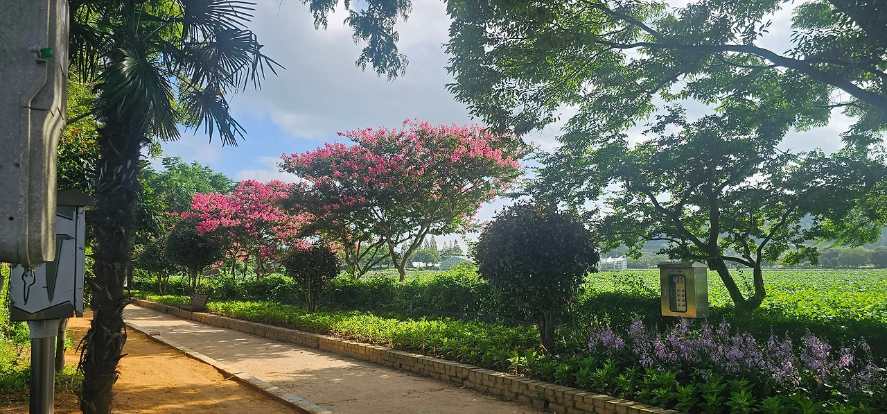 배롱나무도 수줍게 붉은 꽃망울을 터뜨리고 있습니다.