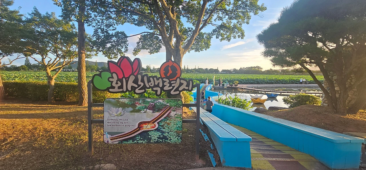 무더위가 기승을 부리는 오늘 우리는 무안회산백련지에 차박여행 왔습니다. 백련지에서는 내 인생의 화양연화라는 주제로 연꽃축제를 합니다.