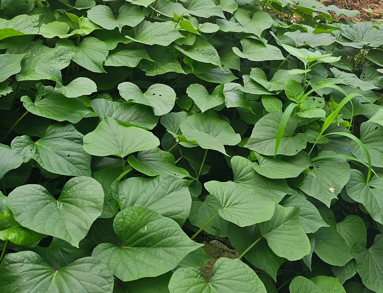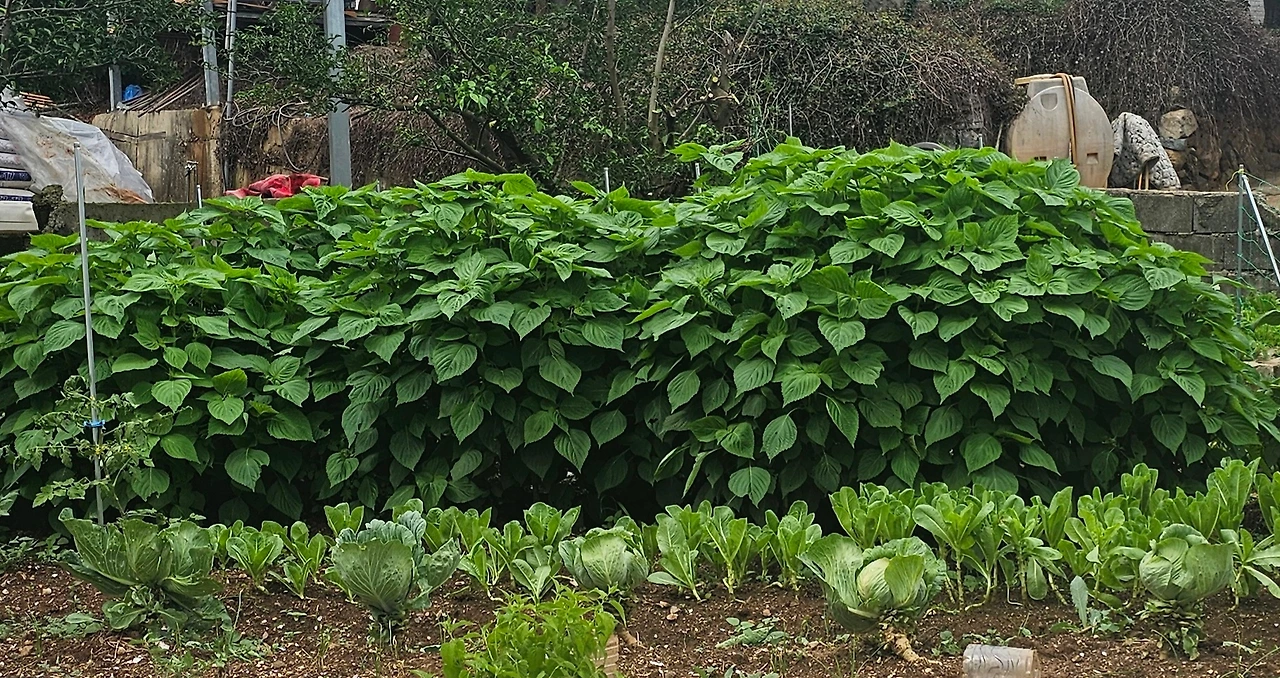 고구마는 뒤꼍에 있습니다. 심어만 두고 관리를 안 하는데도 잘 자라고 있습니다. 고구마순은 굳이 안 따도 되니 좋습니다. 저에게는 고구마가 제일 키우기 좋습니다. 많이 있으나 과잉생산은 아닙니다.