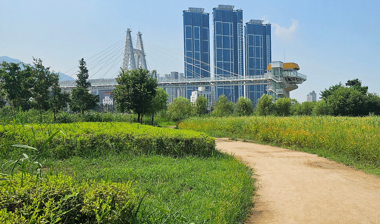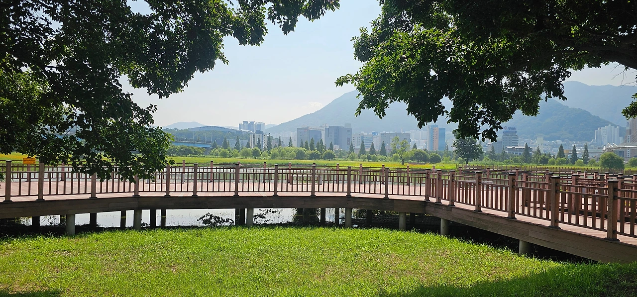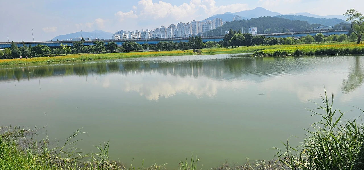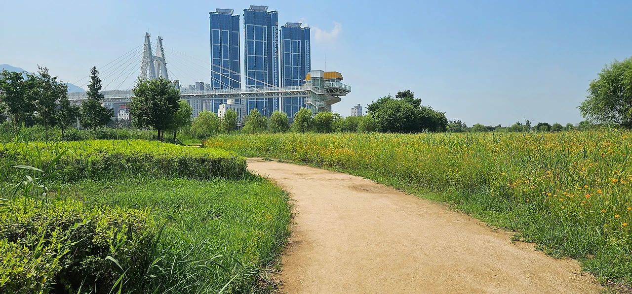 황톳길 왕복하고 다음 행선지로 떠납니다. 아담한 숲길도 좋지만 시야가 확 트인 화명생태공원으로 갑니다. 그늘이 없을까 봐 걱정입니다.