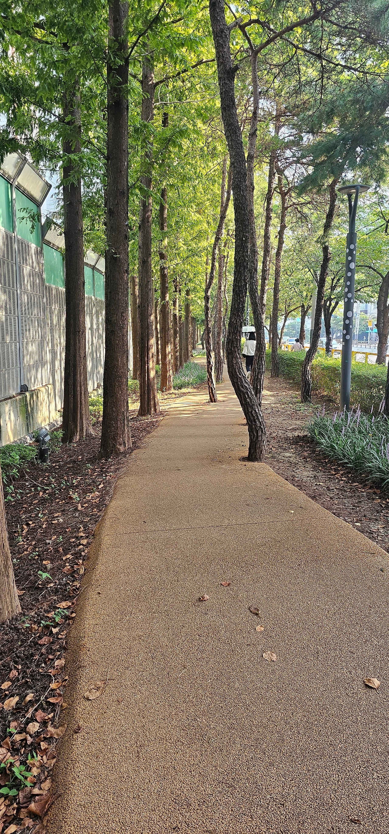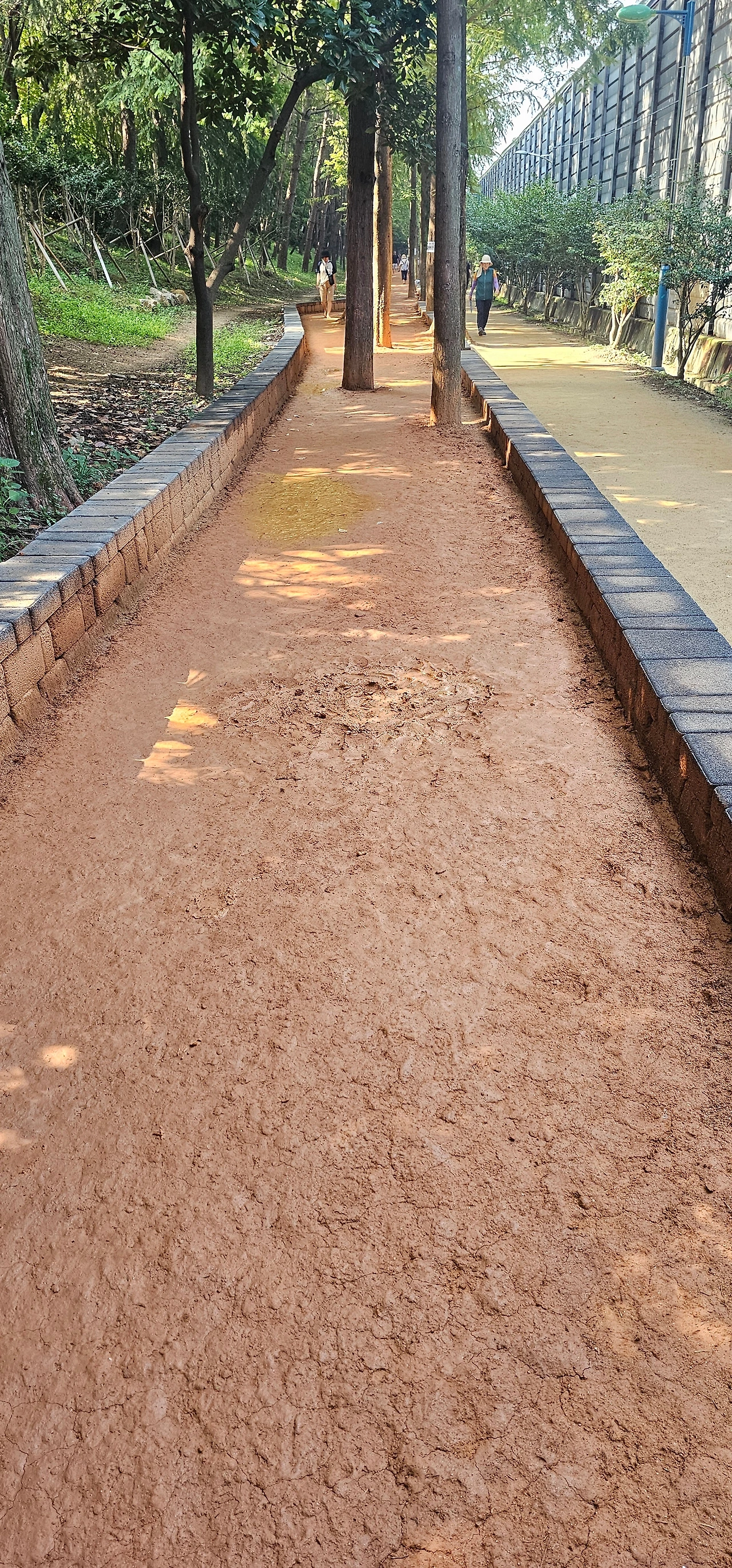 우리 집에서 가장 가까운 도시숲길입니다. 이 길은 운동하는 사람이 쓰는 길이 아니라 인도대용으로 이용됩니다. 잘 다져진 마사토길입니다. 걷기에 최적화된 길입니다.