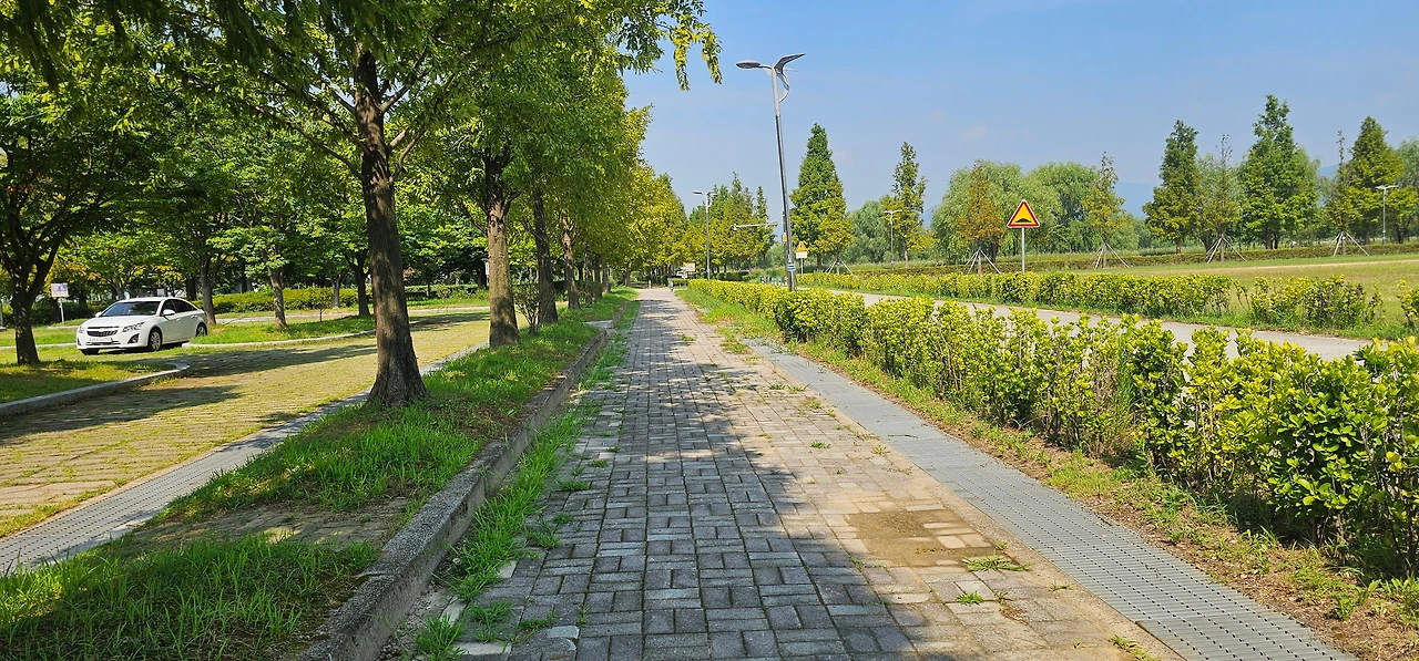 눈이 시원합니다. 반그늘길을 따라 서쪽으로 갑니다. 초록초록 길입니다.